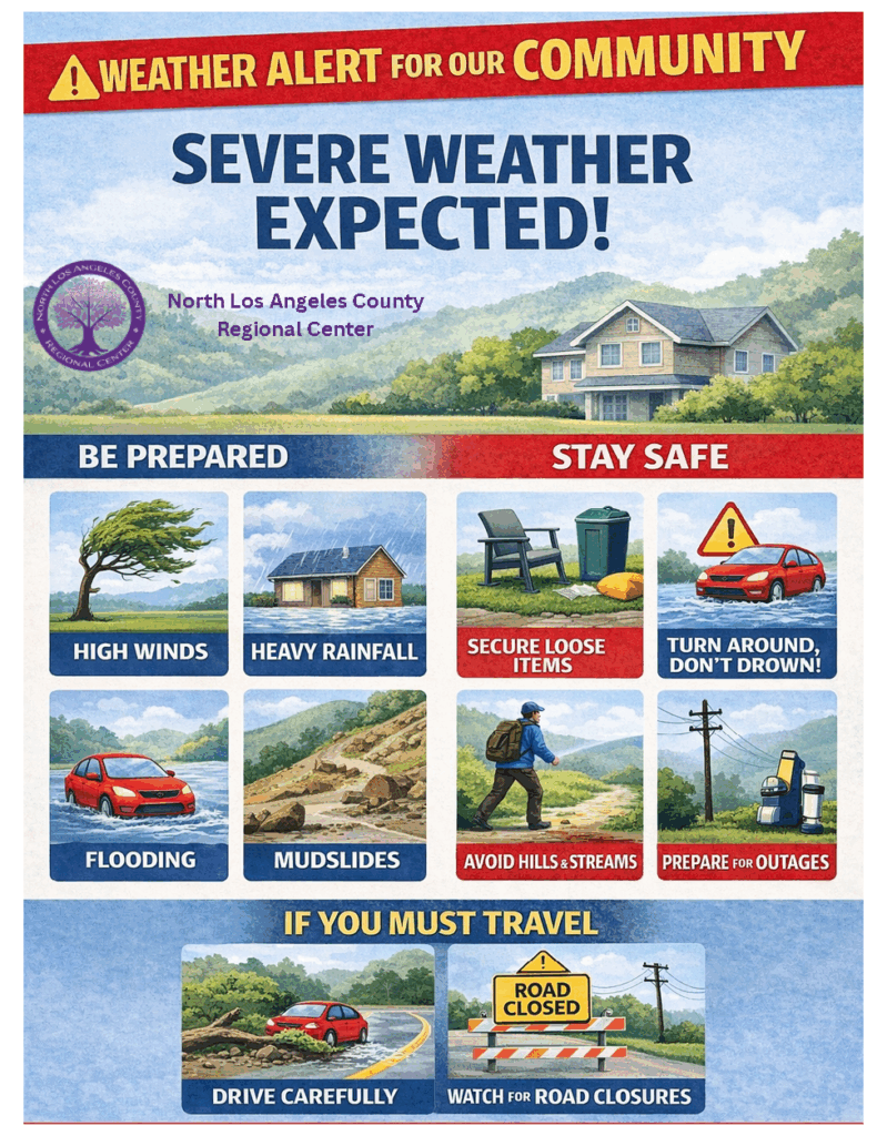 Our area is forecast to experience high winds and heavy rainfall, which may lead to flooding and potential mudslides, especially in low-lying areas, near hillsides and previous burn scars.