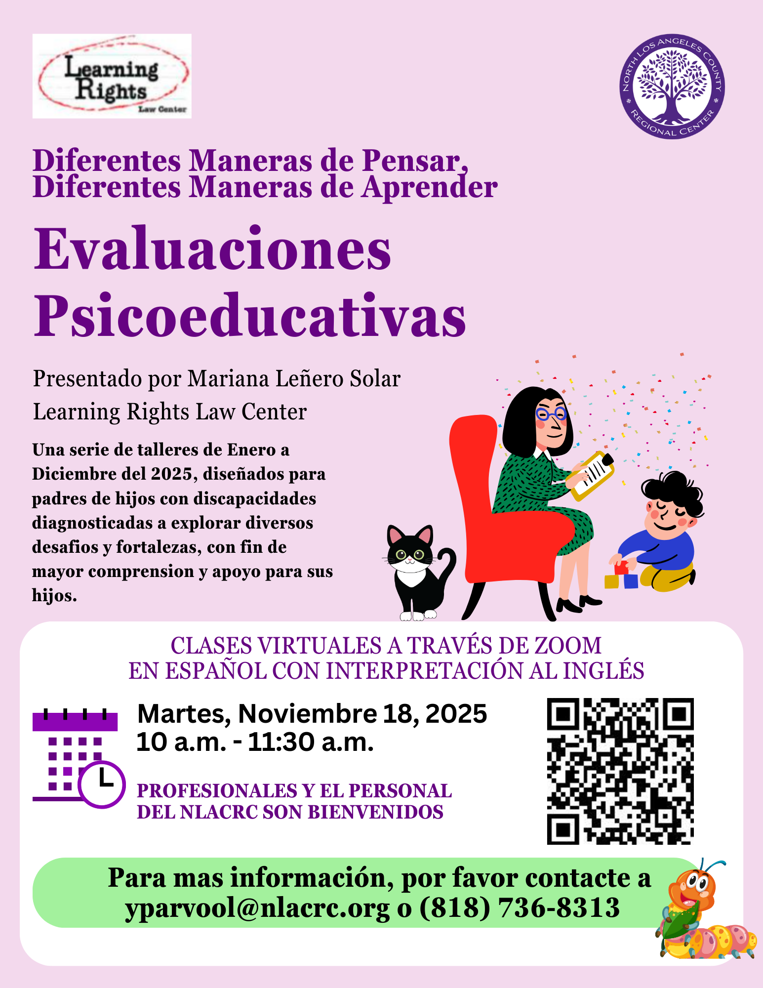 “Diferentes maneras de pensar, diferentes maneras de aprender” es una oportunidad para que usted aprenda y comprenda mejor las diferentes habilidades de su hijo. Tendrá acceso a ideas y herramientas para ayudar a su hijo con sus habilidades de aprendizaje. Mariana Leñero Solar es la instructora de la serie. لا سرا. Leñero Solar مشاوره روانشناسی و آموزش برنامه دفاعی خودکار TIGER de LRLC از حقوق یادگیری برای حمایت از خانوادهها که نیاز به استفاده از آموزش ویژه دارد.