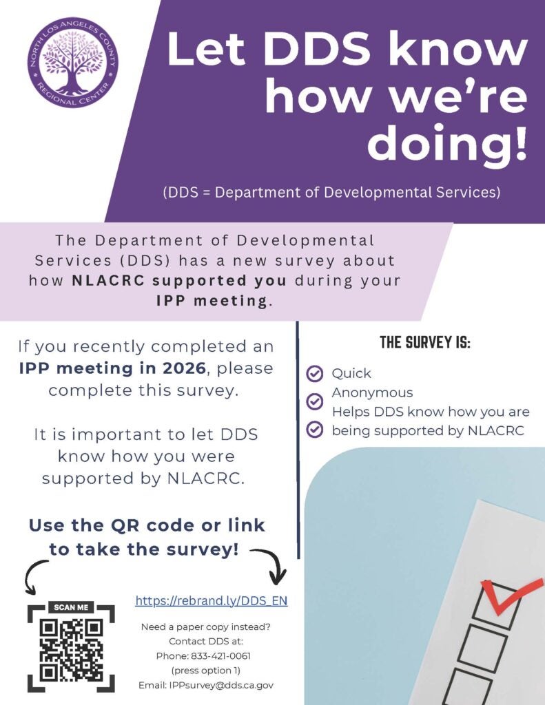 The Department of Developmental Services (DDS) has a new survey about how NLACRC supported you during your IPP meeting.