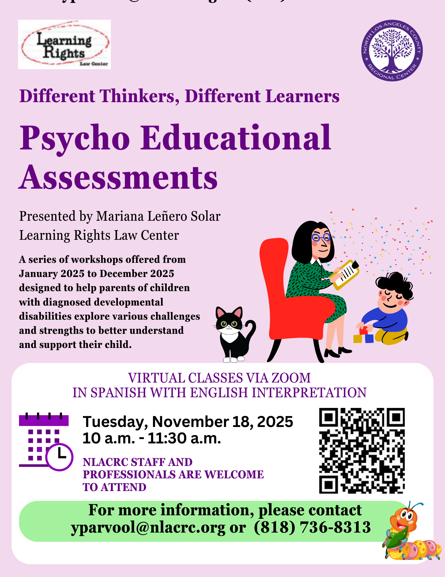 “Diferentes maneras de pensar, Diferentes maneras de aprender” ay isang oportunidad para sa isang pagkakataon para sa isang aprenda y comprenda mejor las diferentes habilidades de su hijo. Tendrá acceso a ideas y herramientas para ayudar a su hijo con sus habilidades de aprendizaje. Mariana Leñero Solar es la instructor de la serie. La Sra. Leñero Solar es consultora psicoeducativa at instructora del programa de autodefensa TIGER de LRLC diseñado y enseñado por Learning Rights para fomentar las herramientas de las familias que necesitan abogar con éxito dentro de la educación especial.
